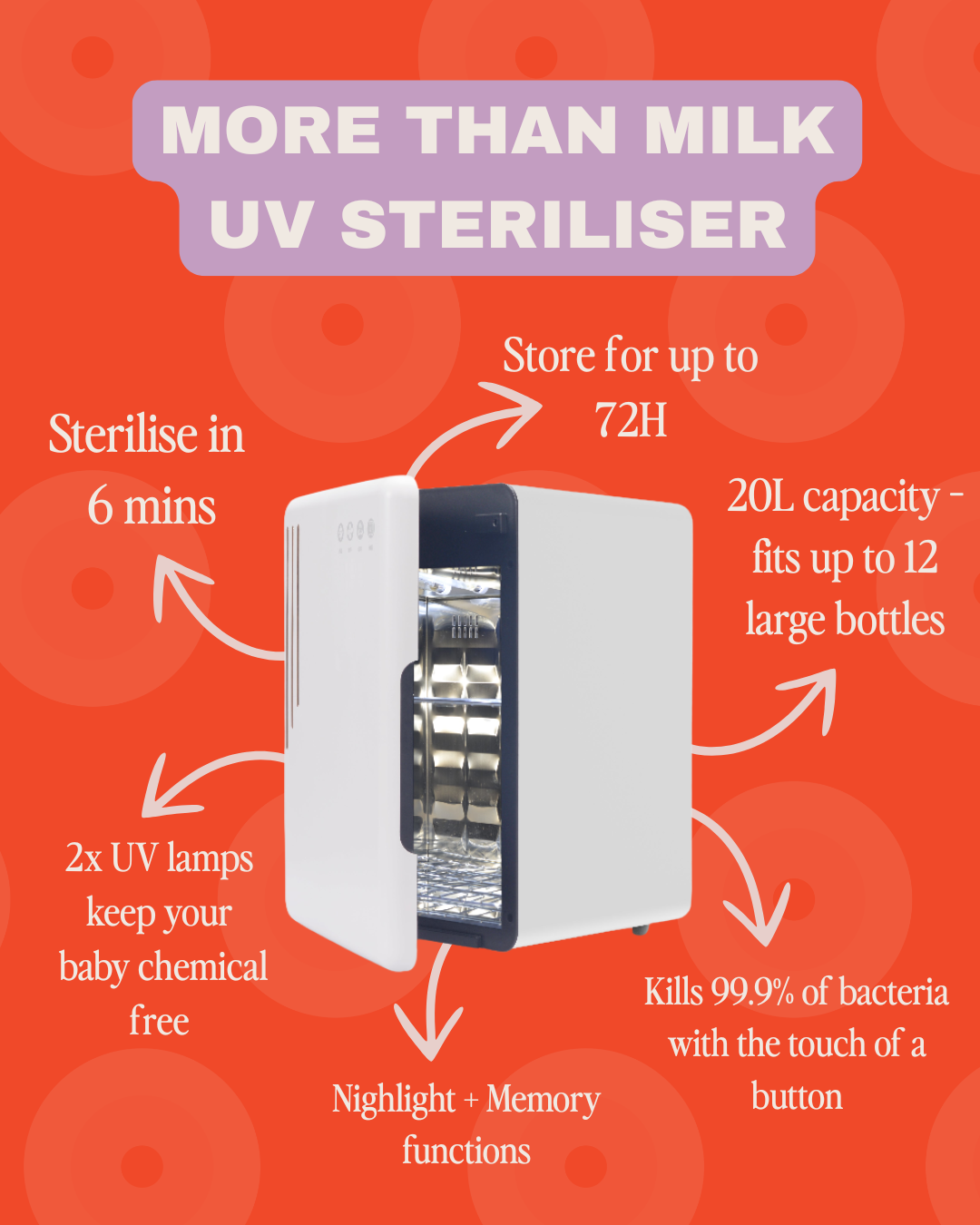 - All-in-One Convenience – sterilise, dry, and store in one place. No extra gadgets, no extra steps.